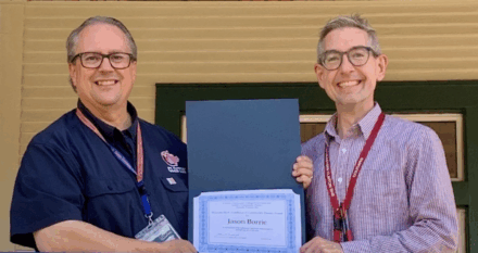 Clinton Community College Vice President of Institutional Advancement Steve Frederick and Jason Borrie ’99