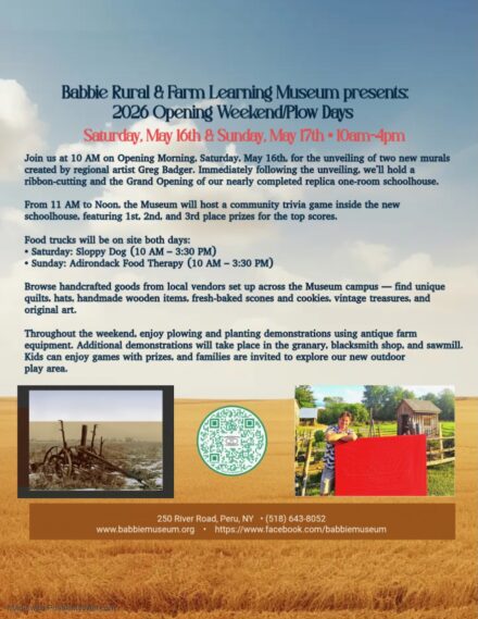 Posted: April 24th, 2026 under Adirondack Region News, Agricultural News, Community Events, Education News, General News, Northern NY News, Peru News, Peru/Regional History.