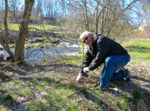 Approximately 20 volunteers planted about 225 trees this morning at Heyworth/Mason Park. The goal was to prevent or reduce river erosion. The trees were donated by the NYS Department of Environmental Conservation. The program was coordinated by the Clinton County Soil and Conservation District and Adele Douglas here in Peru. It was an absolutely beautiful day to plant trees.