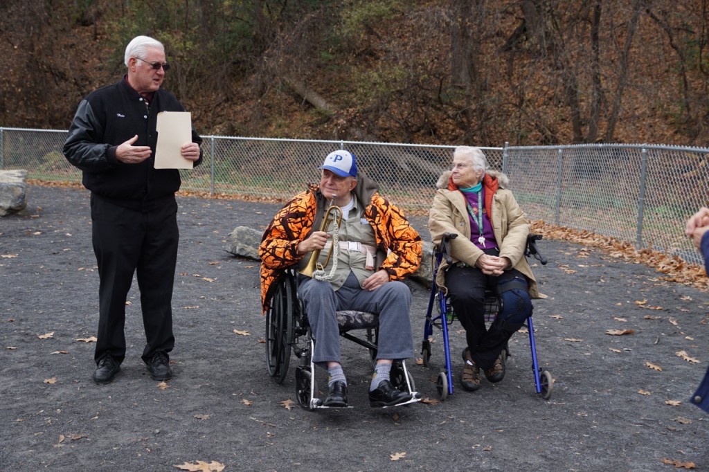 November 5, 2016 – Peru’s new dog park adjacent to Heyworh/Mason Park was officially dedicated this morning. Town Supervisor Peter Glushko read a Town Board Resolution officially dedicating the park to Ann and Lynn Wilke. Glushko also thanked Peru residents, the Town Board, town employees and everyone who has supported establishing the park.