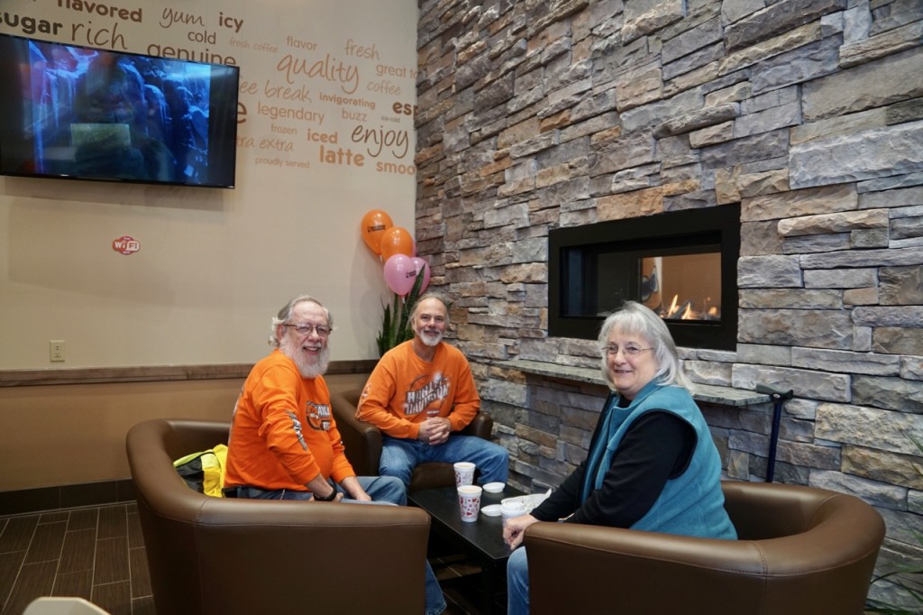 Down the hallway there’s a community meeting room which Aley said will be available free of charge to community groups. It will accommodate about 12 people. Outside, during warm weather customers should enjoy the comfortable patio. Aley’s wife Cheryl, a Master Gardener, has been responsible for the extensive landscaping.