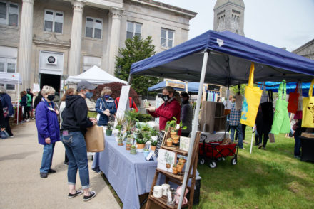 On Saturday, May 8th, there were two well-attended events in downtown Plattsburgh today. The Farmers Market opened and the Stand Theater For The Arts hosted a Mother’s Day Market. Brinkerhoff Street was closed to traffic and the Stand’s front lawn was filled with exhibitors. The Strand Gallery was also open. Many people went inside to view an art exhibit by Jim Kobak, a Peru CSD science teacher.