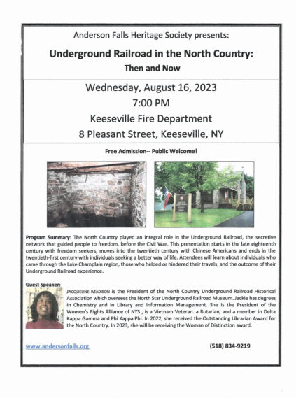 Anderson Falls Heritage Society presents: Underground Railroad in the North Country: Then and Now