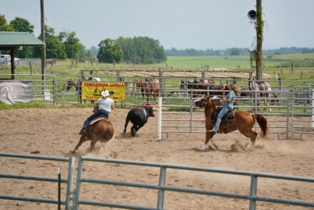 Peru is known as apple and dairy country, but for several weekends every summer, it can rightfully be called cow sorting and penning country. Enthusiasts from Eastern Canada, Eastern U.S., and, today, as far away as Brazil compete at Rob and Cathy Butts’ Cimarron Arena on the Mannix Road.