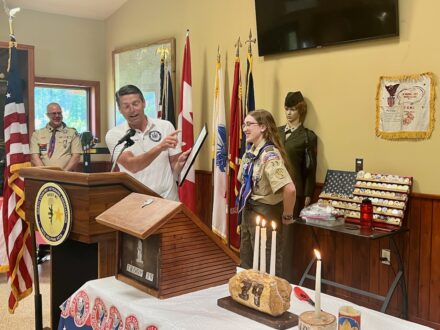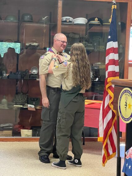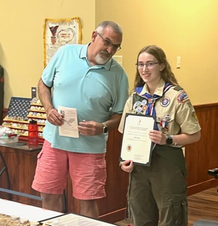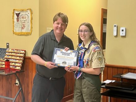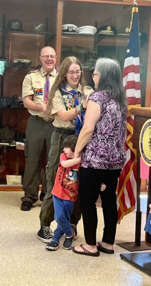 July 12, 2025 – West Chazy, N Y – Family, friends, community leaders, and members of Scouting America Troop 8039 gathered today at the North Country Veterans Association for the Eagle Scout Court of Honor ceremony for Abigail Eagan. A former Girl Scout, Abigail joined Troop 8039 in 2014 and has worked diligently to develop her skills. She is now the first female Eagle Scout in the Adirondack District. When Abby turned 18 she became an Assistant Scout Master .