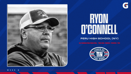 Oct. 22, 2025 – East Rutherford, NJ – The New York Giants and Gatorade have selected Mr. Ryon O’Connell of Peru High School (Peru, N.Y.) as the Lou Rettino High School Coach of the Week for Week 8 of the 2025 season. The Peru Knighthawks remain undefeated and improved to 7-0 with a 27-0 win on the road in AuSable Valley last Friday night. With an equally potent offense and physical defense, they have outscored their opponents 259-49 so far this season.
