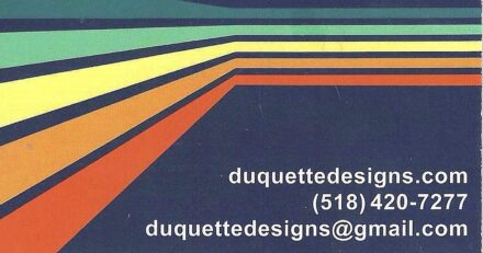 While the show at the Peru Library is Abigail’s first solo show, she’s exhibited in several area galleries, at SUNY Plattsburgh, Saratoga, Lake Placid, and Ogdensburg. She also operates a small company, Duquette Designs, where she specializes in graphic design and is a social media manager for local companies.