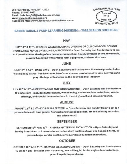 Posted: March 16th, 2026 under Adirondack Region News, Agricultural News, Arts and Entertainment, Community Events, Education News, General News, Northern NY News, Peru News, Peru/Regional History, Upstate New York.