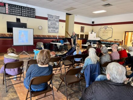 Peru – “Gee” and “Haw.” Those are the commands mushers use to tell their sled dogs to turn right and left. Until March 7, many local families and kids had never heard those words—at least, not until Karen Land brought her exciting world of sled dogs to a Peru Free Library Family Program at St. Augustine’s Parish Center. Land had everyone, from the youngest children to their parents, captivated with her thrilling stories, gear, and, of course, her friendly Alaskan Husky Sophie, who lay calmly nearby as she spoke. She’s been sharing her adventures at hundreds of libraries and schools since 2004, after competing in three consecutive Alaska Iditarod races, the nearly 1,000-mile trek from Anchorage to Nome.