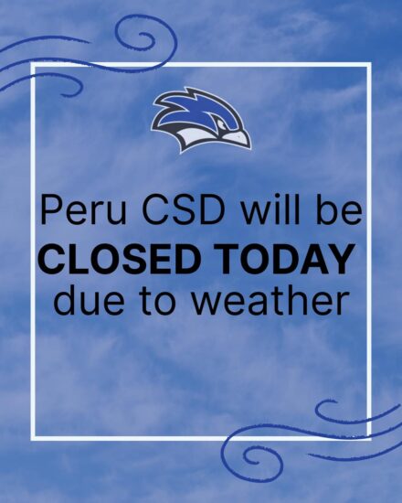 The Peru Central School District is closed today March 17, 2026, due to the downed trees and powerlines from last night’s weather. The campus will be closed to all activities.