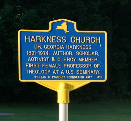 Dr. Georgia E. Harkness (1891–1974), born in Harkness New York, became a leading figure in Methodism. She was a scholar, activist, clergy member, and prolific author of books and poetry. Her writing helped inspire Dr. Martin Luther King Jr. She also helped pave the way for women’s ordination in the Methodist Church and became the first female professor of theology at a U.S. seminary. Her legacy continues today through several initiatives, including scholarships for women over age 35 who are studying to become Methodist clergy.