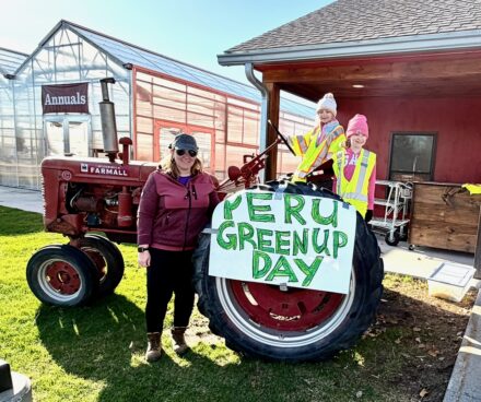 Peru, April 18, 2026 – Peru Lions Club and Peru PTO Community volunteers came to Rulfs Orchard Saturday morning to participate in the 2026 Community Green Up Day. Lions Club President Dave Dalton estimates that 50 adults and youth were given street and road assignments throughout the community. Dalton and other Lions Club members handed out collection bags, vests, and trash pickers to the volunteers. As noon approached, several pickups and trailers left Rulfs’parking lot headed for the Clinton County Landfill.
